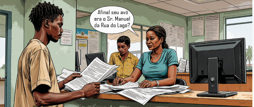 José Mapira, 25 anos, herda um terreno do avô paterno na Vila Esperança e vai à Vereação de Urbanização Municipal solicitar o Direito de Uso e Aproveitamento da Terra (DUAT) para construir sua casa. A atendente, Sra. Carla, ocupada com uma grande quantidade de documentos e um sistema lento, inicia o atendimento sem cumprimentá-lo, perguntando abruptamente: “Já trouxe a documentação do terreno?". “Trouxe o testamento de herança e a declaração do Bairro, mas a demarcação do terreno o meu avô nunca fez. Como resolvo isso?". Ela suspira: “Tem que contratar um topógrafo. Sem planta da demarcação, não dá para avançar”.